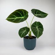 La Alocasia Black Velvet es una planta de follaje cautivadora que presenta hojas de un suave terciopelo color carbón profundo, con impresionantes venas plateadas que crean una apariencia casi joyosa. Esta hermosa planta tropical compacta prospera en condiciones cálidas y húmedas con luz brillante e indirecta, lo que la convierte en una excelente opción tanto para coleccionistas de plantas como para diseñadores de interiores. Su colorido dramático añade un contraste sofisticado a cualquier habitación, mientras que su tamaño manejable se adapta a estantes, escritorios o soportes para plantas. Es una adición que inicia conversaciones en tu jardín interior y que recompensa el cuidado atento con un impacto visual durante todo el año.