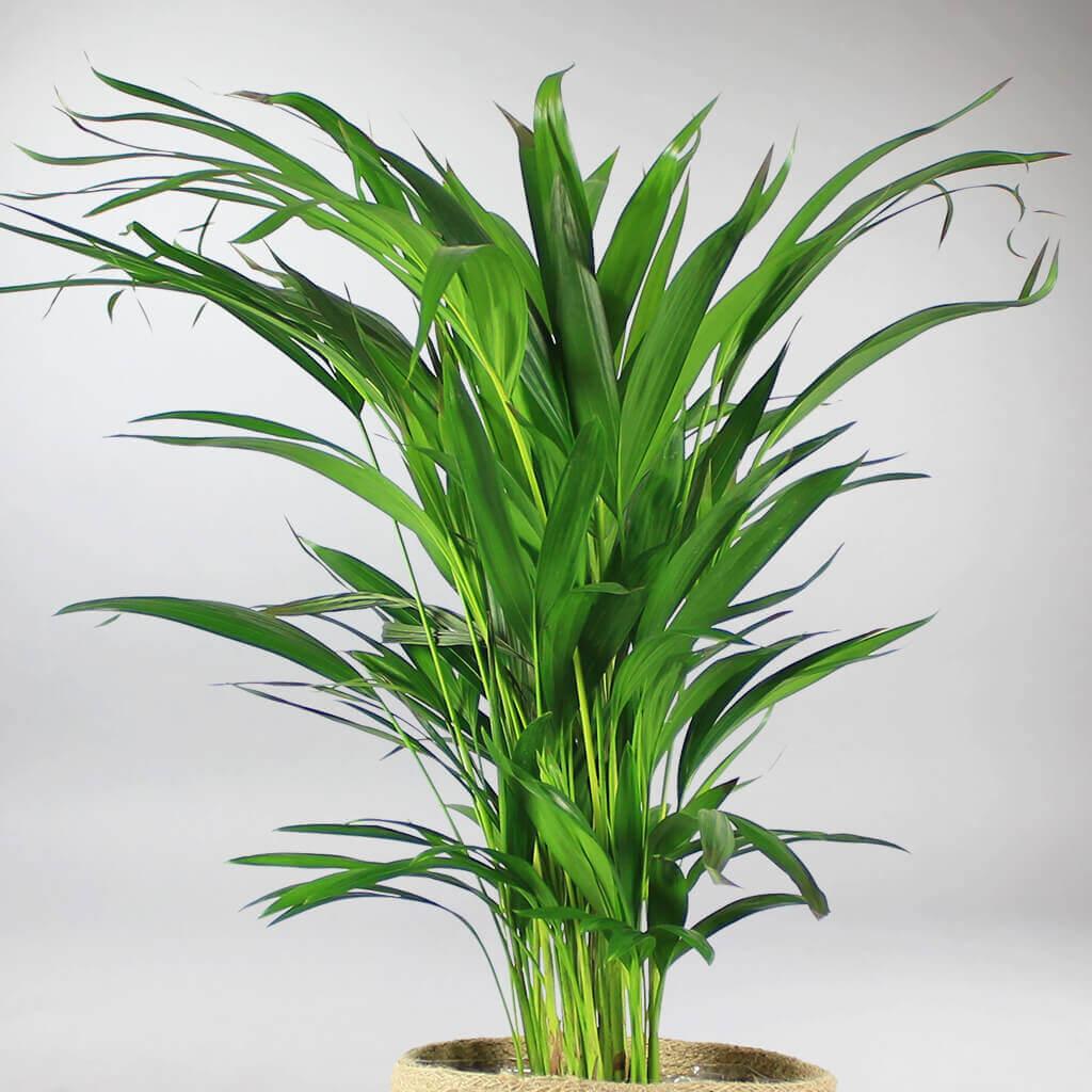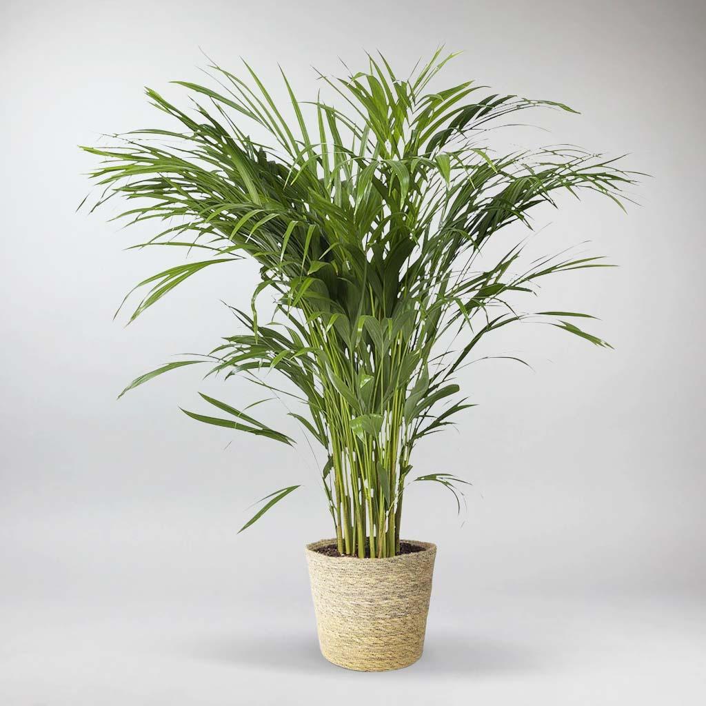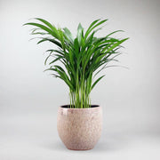 La Palma Areca, también conocida como Palma de Bambú, Palma Mariposa, o Palma de Caña Dorada, es una impresionante belleza tropical que aporta la esencia de la naturaleza a tu hogar. Su disposición en forma de fuente de frondas arqueadas y plumosas, cada una con hasta 100 foliolos estrechos, crea una declaración visual cautivadora. Con troncos lisos y dorados que recuerdan a grupos de bambú, la Palma Areca añade un toque exótico a cualquier habitación.