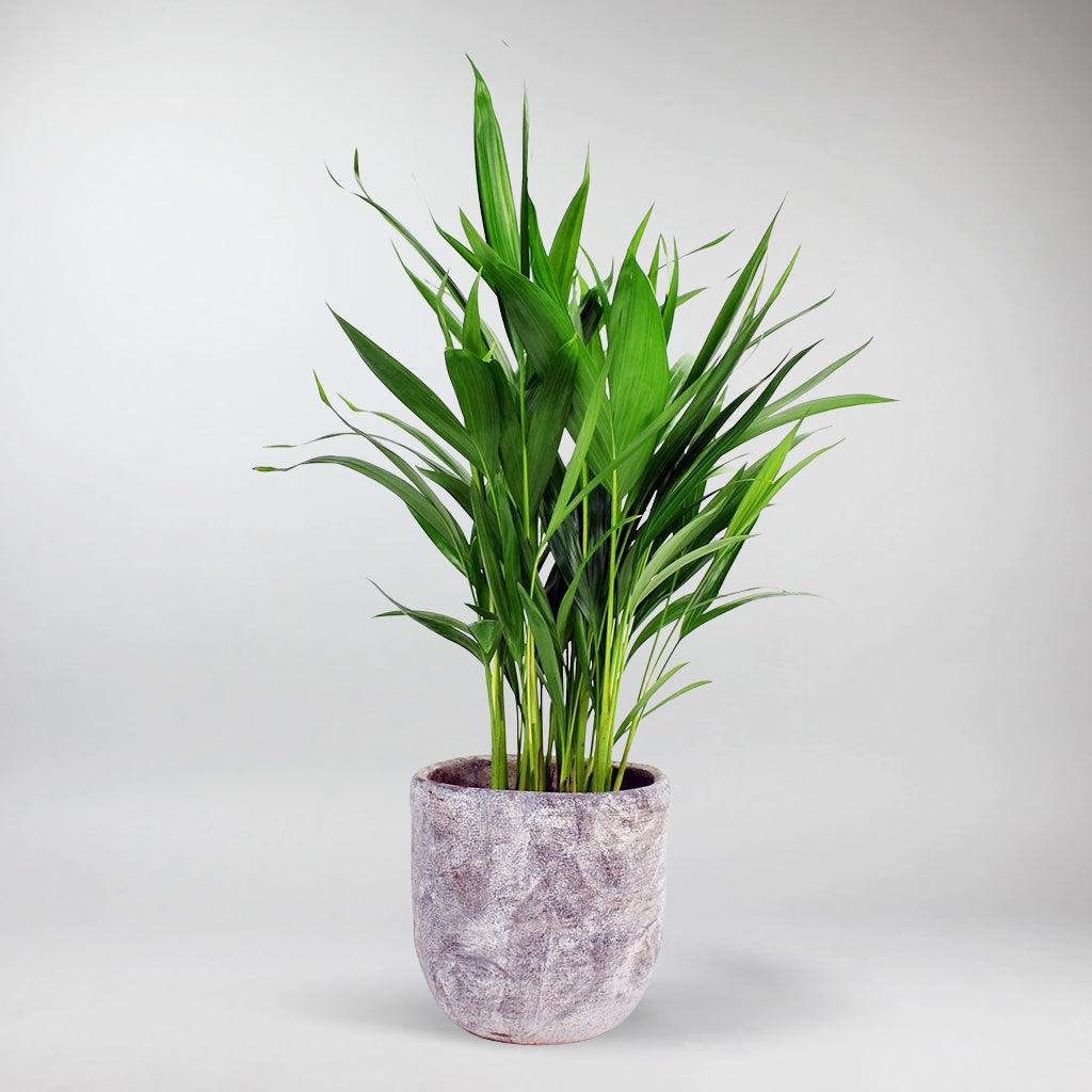 Conocida por su bajo mantenimiento, la Palma Areca es ideal para amantes de las plantas de todos los niveles de experiencia. Requiere luz solar brillante e indirecta y riego ocasional cuando el suelo se siente seco. Su resistencia y adaptabilidad la convierten en una adición encantadora para tu hogar u oficina.