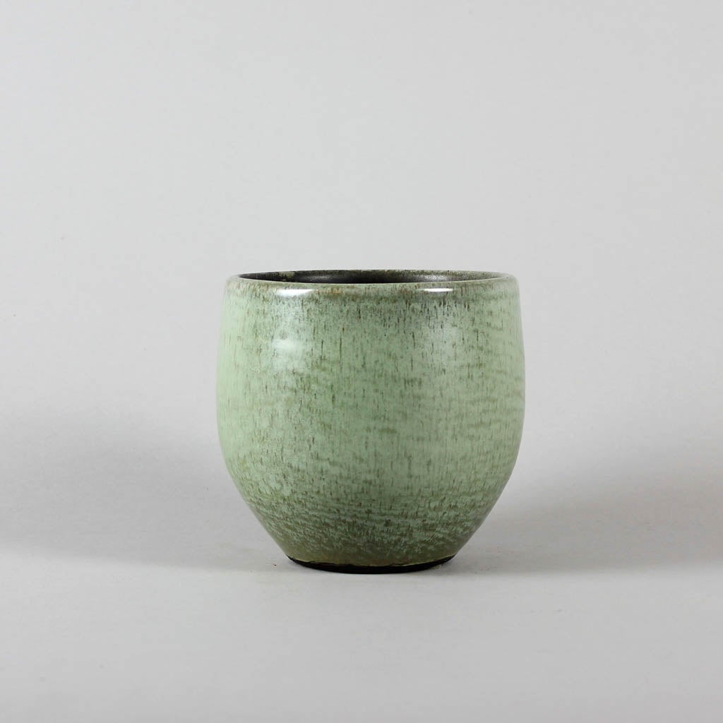 The Mist is a curved ceramic pot in variegated sea mist green. Mist comes in three sizes, so you can get the collection or mix and match. The colouring and dappled effect is the result of a chemical reaction in the firing process so no two will be exactly the same.
