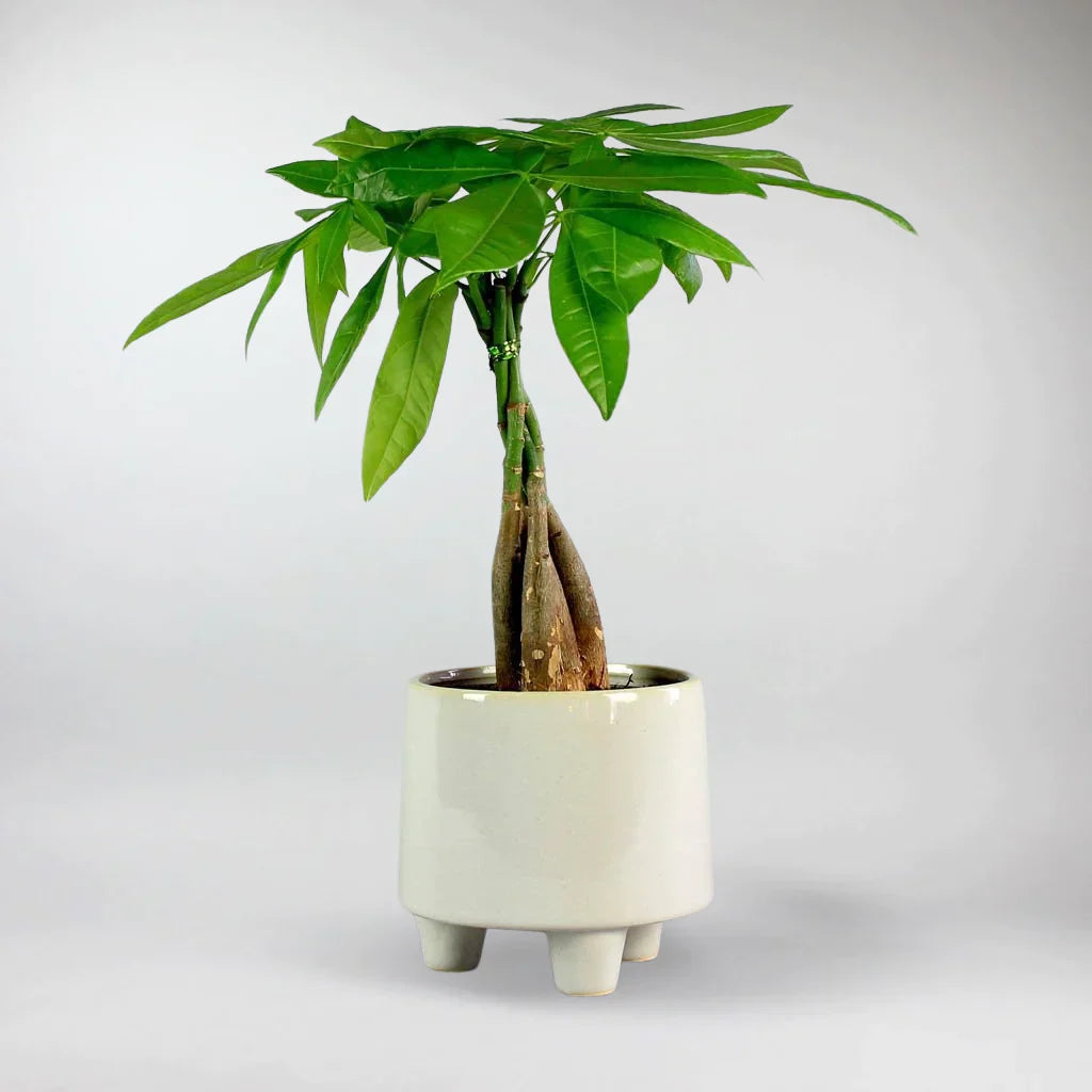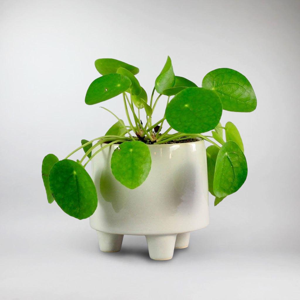 Estas adorables macetas de cerámica vienen en dos tamaños, tienen un acabado brillante y tres patitas pequeñas.